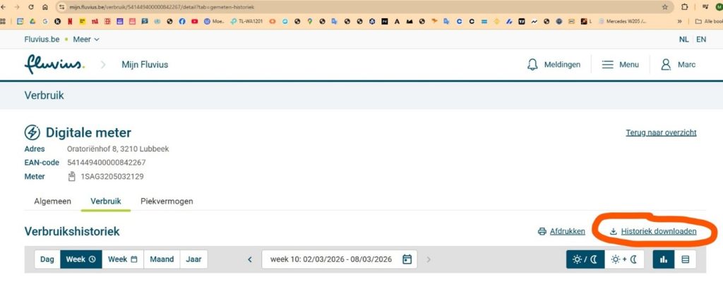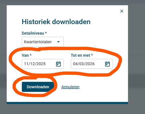 Had je heel 2025 nog geen digitale meter, download dan de grootst mogelijke periode.